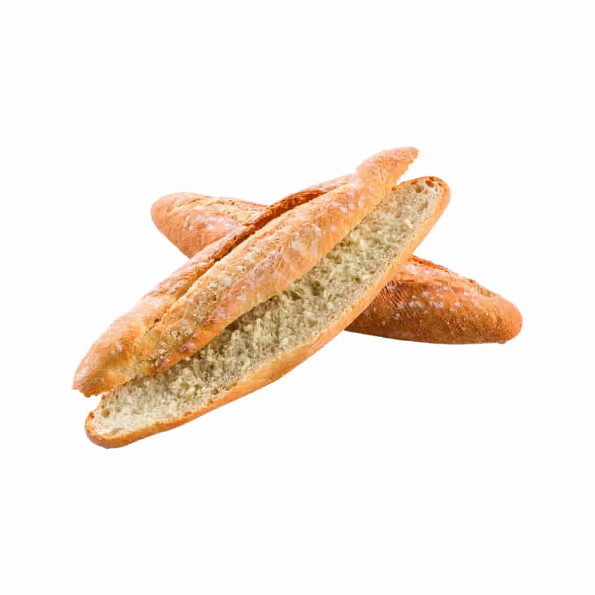 This Spanish baguette successfully combines a thin crispy crust with a light open crumb structure, baked on stone & flour dusted.