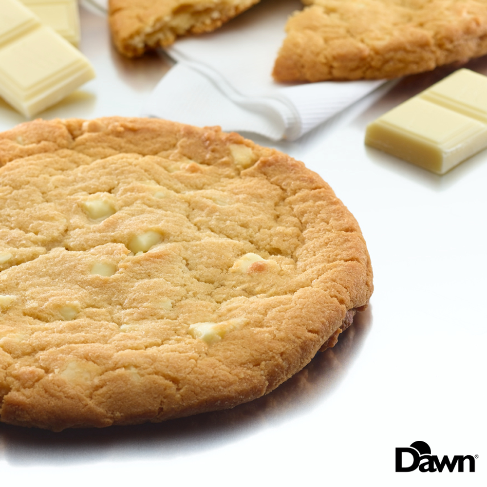 Vanilla dough with silky smooth Belgian white chocolate chunks, a truly creamy, sweet offering