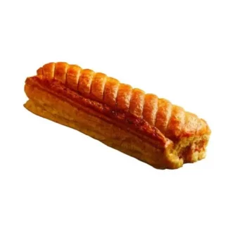 Voluminous nice layered double coloured butter croissant created by the embracement of two flavours of laminated yeast dough (natural and cocoa) infused with a rich choco filling. Made with 16% butter (share of total recipe).