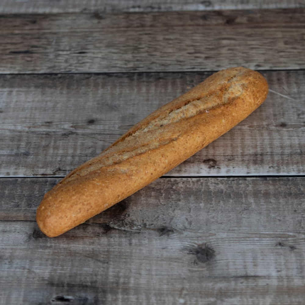 A versatile baguette made from wheat flour, whole wheat flour, malt flour, water, yeast and salt.