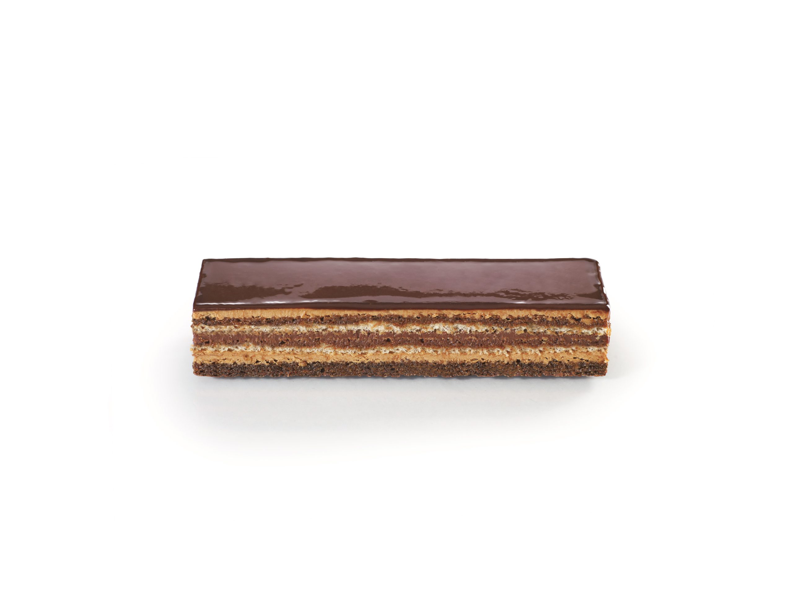 Traiteur de Paris’s L’Opéra is gourmet and sophisticated. It comes as a succession of plain Joconde biscuits, a delicate chocolate ganache and a buttercream with a mild coffee flavour, all covered by chocolate icing providing the final note.