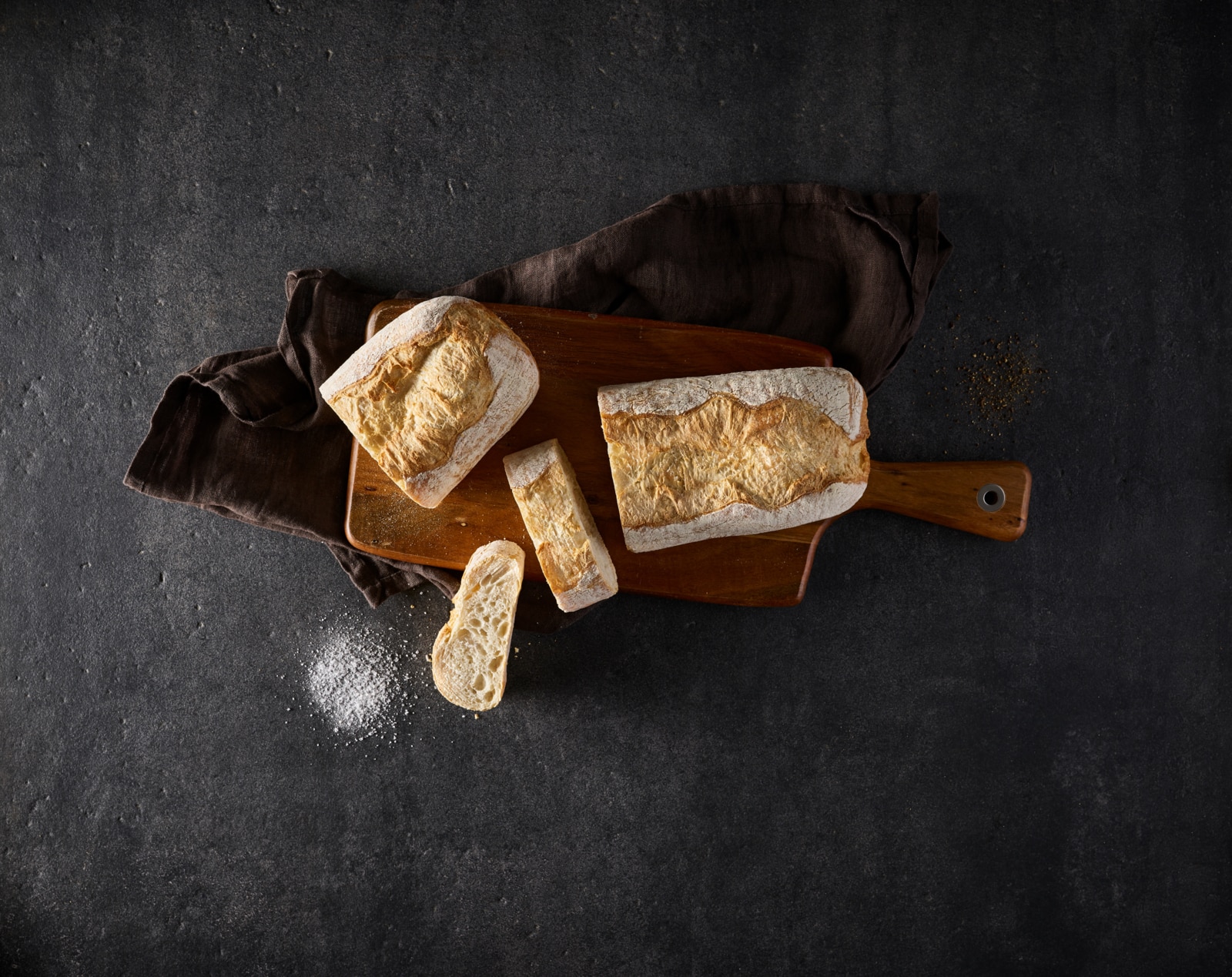 Nice looking loaf Italian style, ciabatta type of dough made according to the tradition; dough folded by hand and baked on stone.