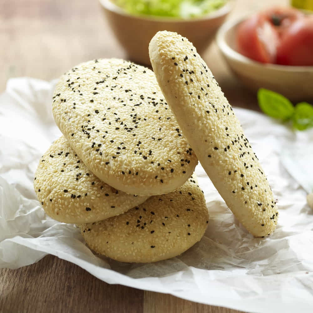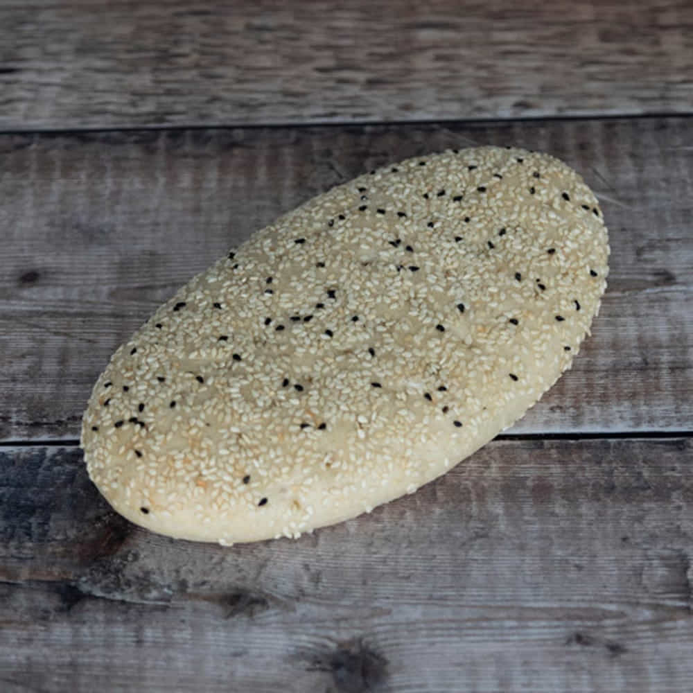 Ingredients:WHEAT flour, water, SESAME SEEDS (5%), rapeseed oil, yeast, RYE flour, iodised salt, nigella (0,3%). Reference Intake: Each 100g portion contains