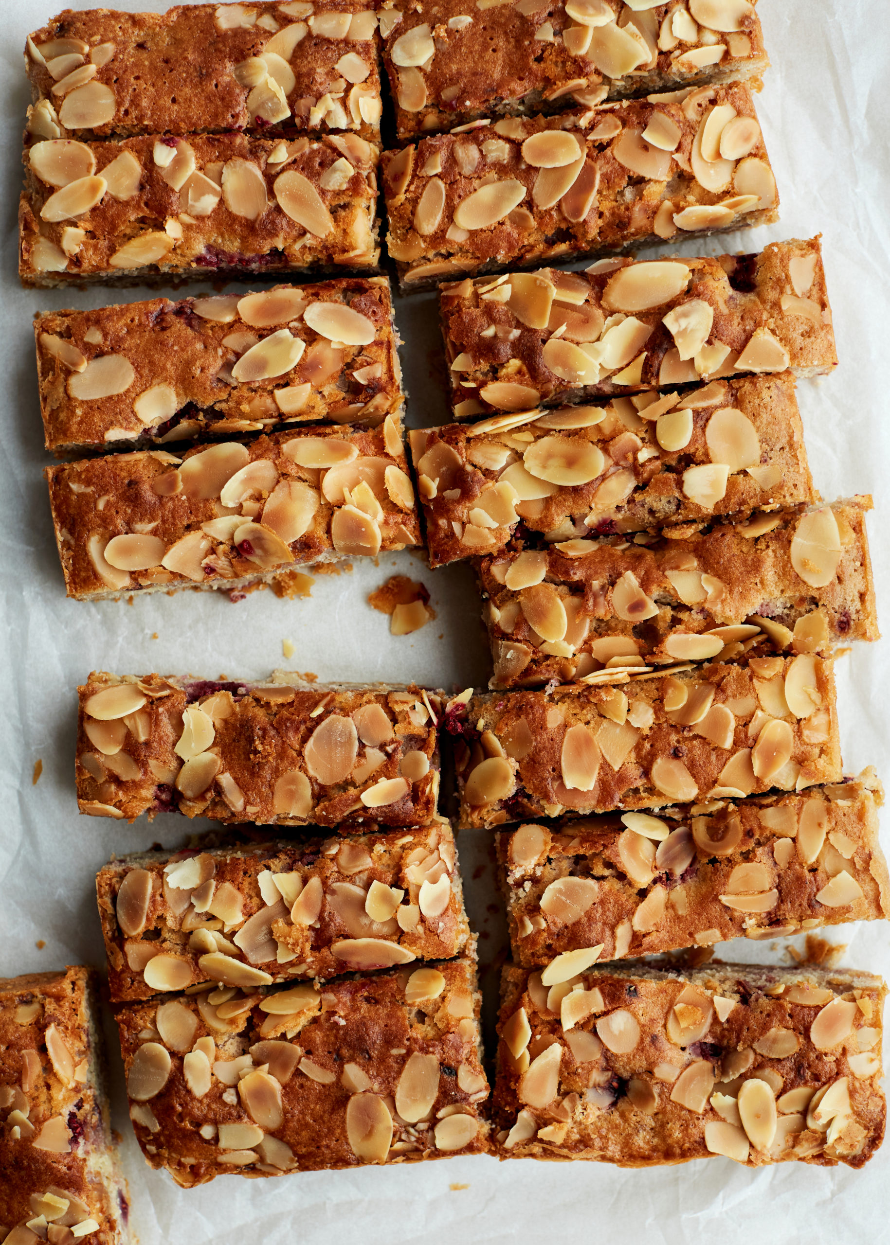 This sexy slice speaks with a French accent and if it could, would probably wear a raspberry beret. We evolved the recipe from a French Friand and Anglicised the frangipane by dressing it up as a cake from the North of England, but we left out the shortcrust pastry underwear. Buttery almond flour in a torrent of raspberries and white chocolate.
