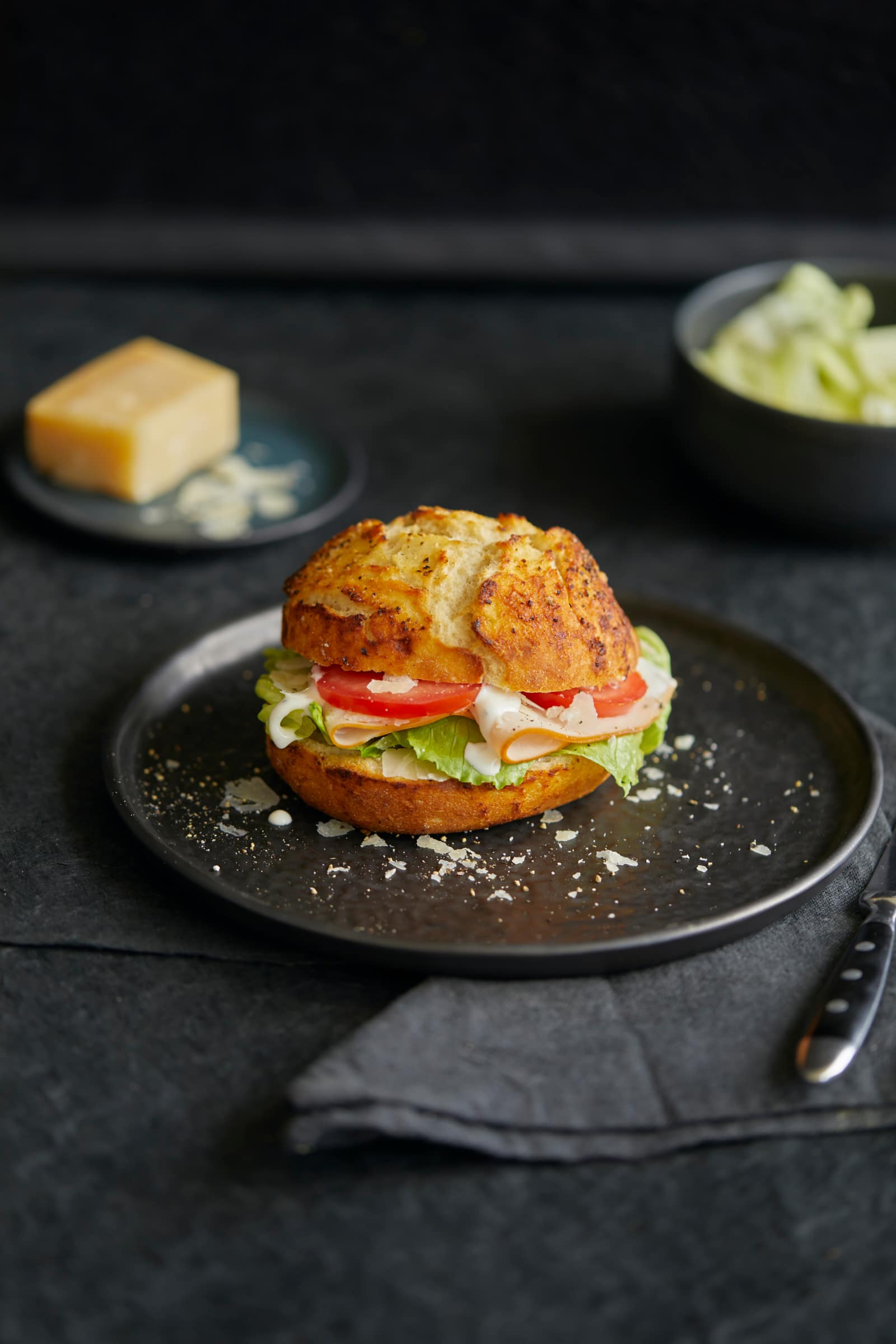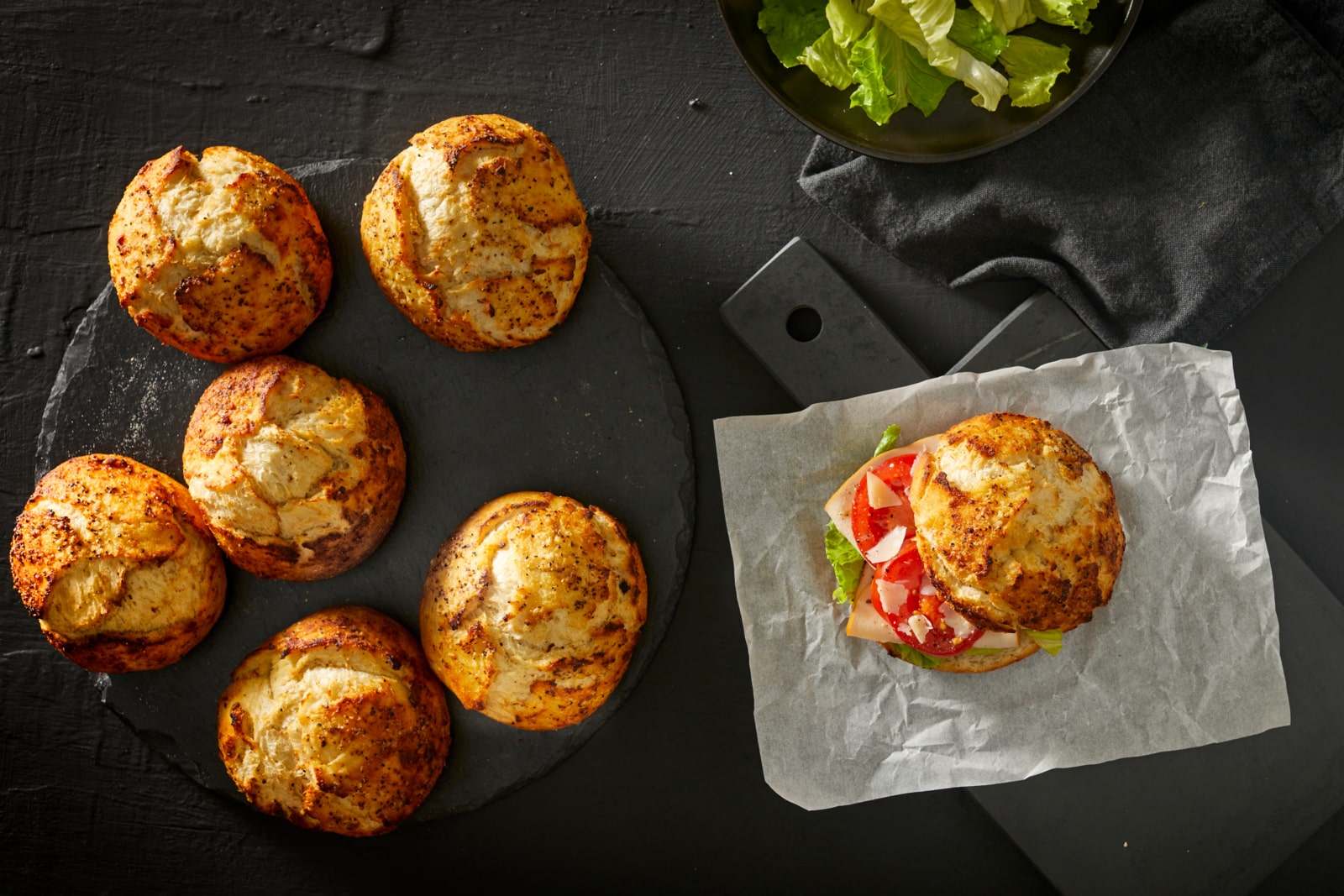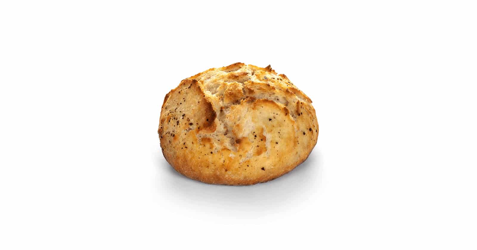 Wheat roll with an expressive, crackling crust and a moist, airy crumb. Covered with a paste of vegetable oil with sea salt and black pepper, enriched with potato flakes and yogurt as secret ingredient for a persistant sensorial freshness