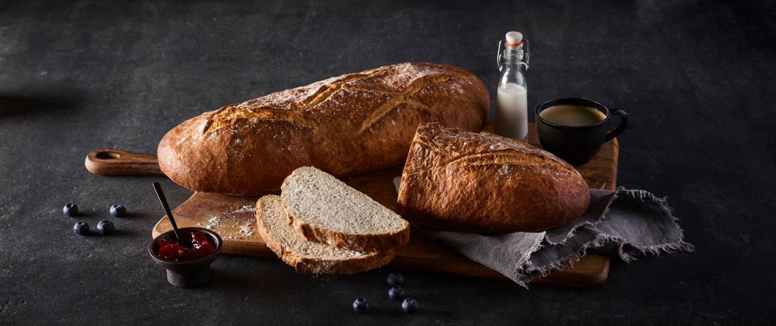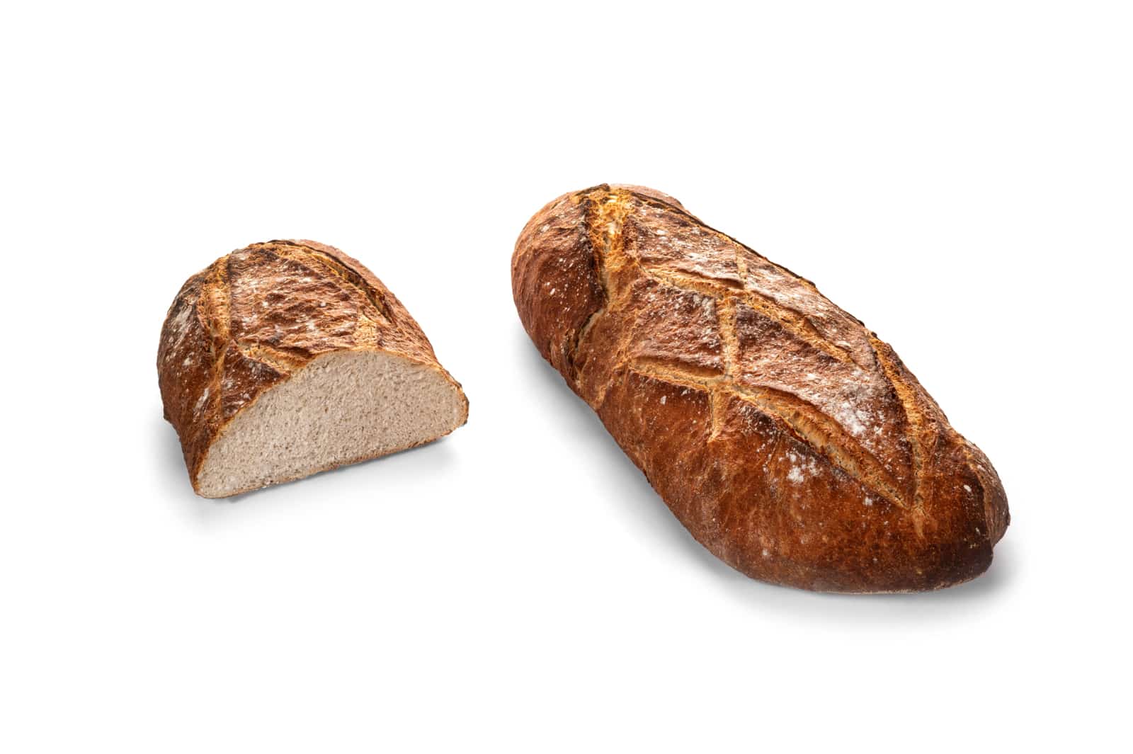 Traditional French wheat bread with sourdough and a little rye, baked on stone. Made from 100% natural ingredients, free from additives.