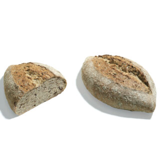 Rustic white country bread from wheat flour and rye with a rye sourdough as a starter, flour dusted and baked on stone. An unique slow mixing and longer bowl resting time guarantee a better hydration of the dough. Resulting in bread with an open structure, a mild sourdough taste and a longer freshness.
