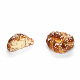 This Swedish Knot is crafted from soft , rich dough, manually folded into a traditional double knot shape and filled with flavourful cinnamon. Decorated with sugar pearls.