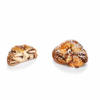 This Swedish knot is made from soft , rich dough , manually folded into a traditional double knot shape and filled with an elegant vanilla filling .