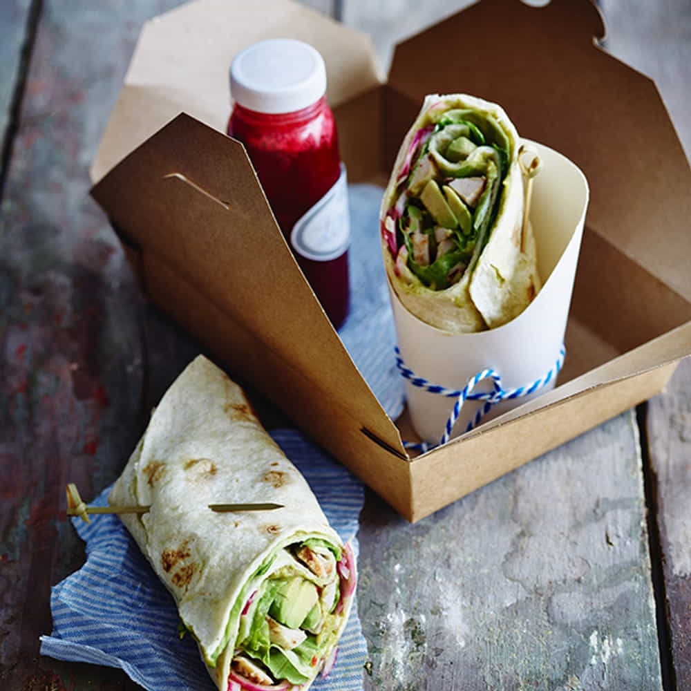 A round flat bread can be used to wrap up food according to choice. The wraps can be served cold, warm, oven baked, microwave heated and even deep fried.