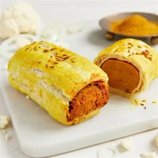 A savoury vegan filling encased in a pre-glazed, flaky pastry roll. Frozen, unbaked