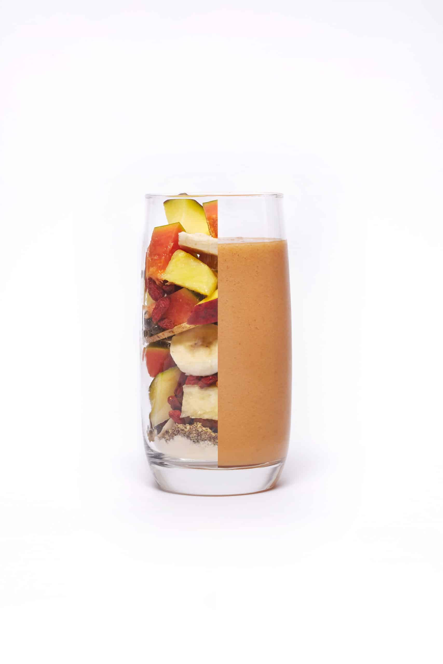 - Add your fruit pouch and superfood sachet and blend for 30 seconds until smooth or adjust to the strength of your blender